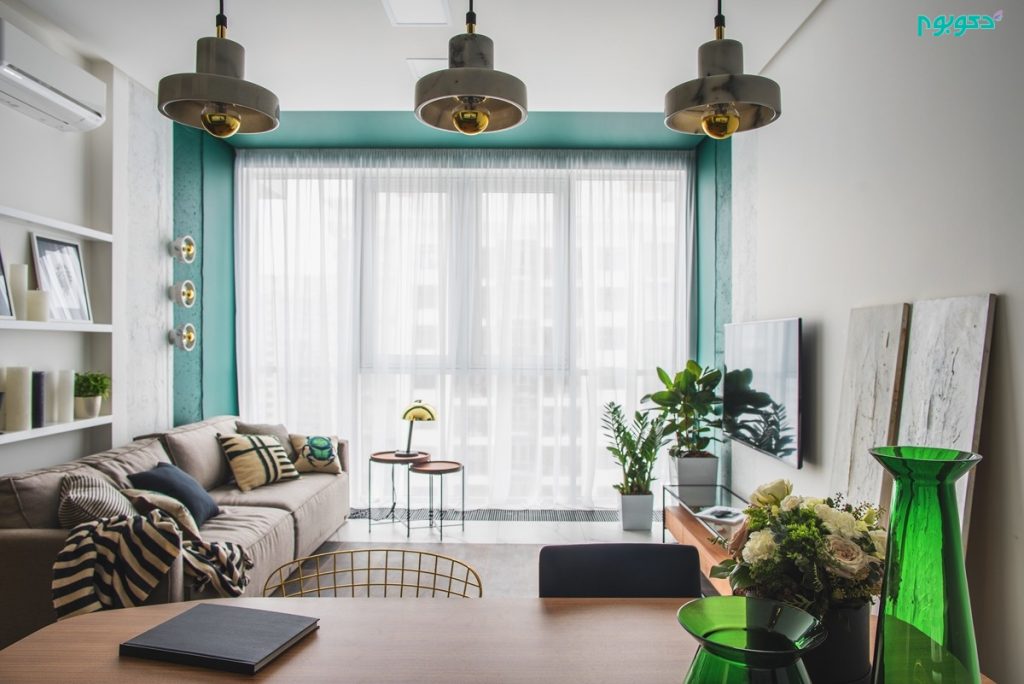 هماهنگی در ترکیب رنگ های طیف سبز و طلایی در دکوراسیون این خانه از نظر طراح یادآور رنگ های موجود