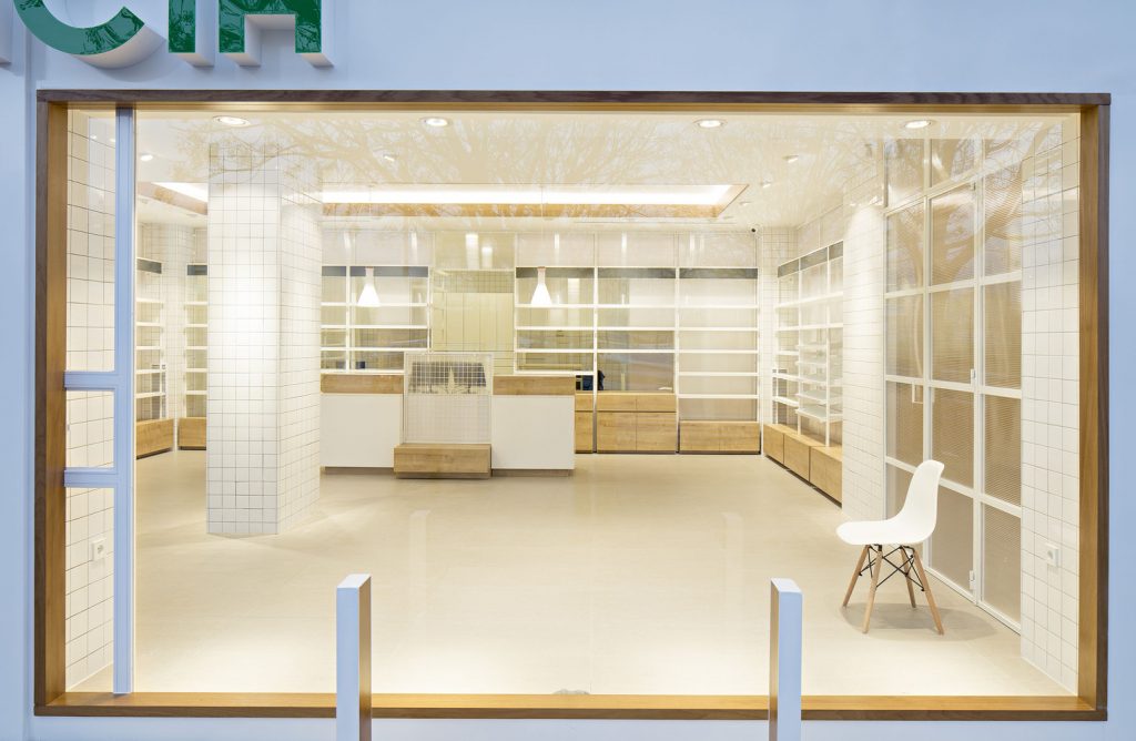 طراحی داخلی این داروخانه با متراژ 96 متر در یک محله مسکونی در حال توسعه در حومه گرانادا واقع شده